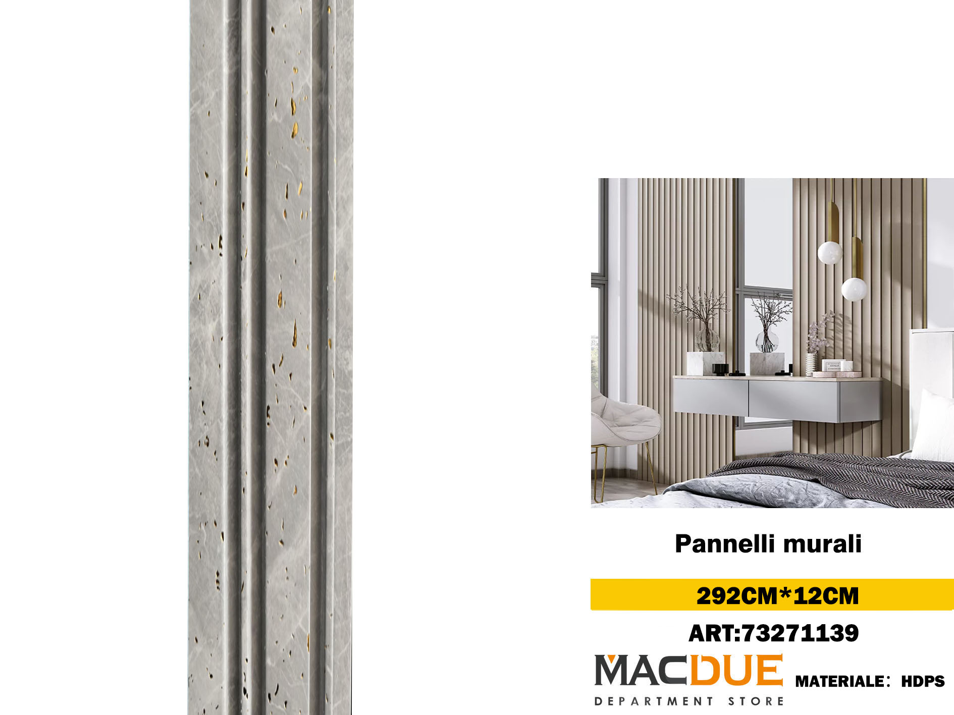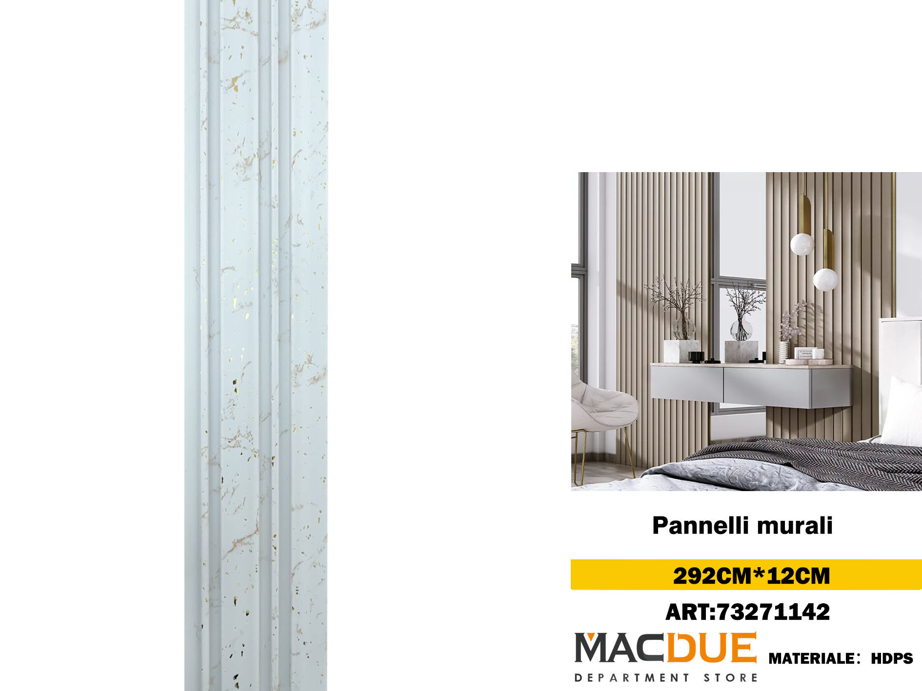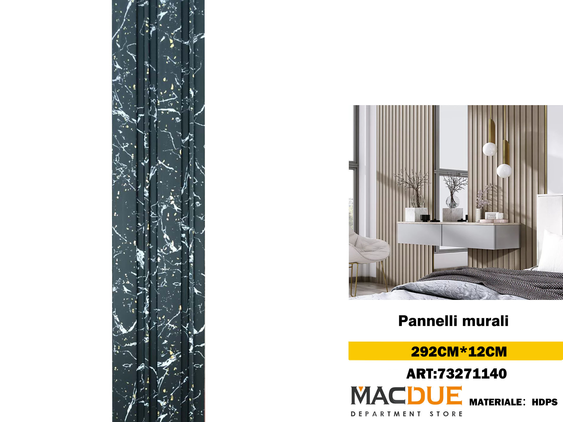 Pannello per la parete a lamelle (2.9 metri) - lunghezza per pannello: 290cm, dimensioni: 2900x12mm, metro quadro installato: 0,348m², materiale:PVC